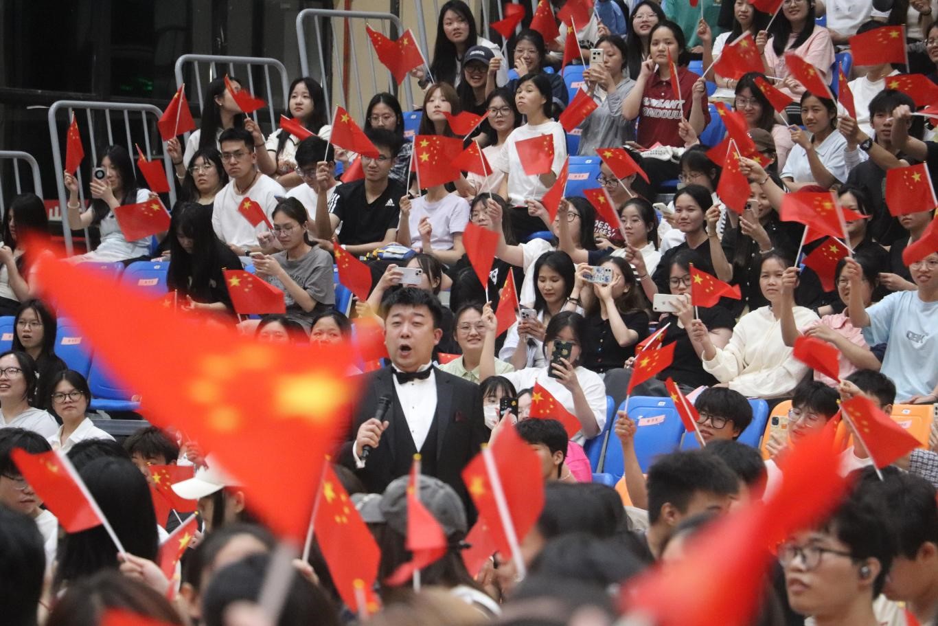 演出尾声,全场起立并挥舞手中的国旗,共同高唱《我和我的祖国》。观众用一阵阵热烈的掌声表达了对艺术家们的赞叹与谢意。