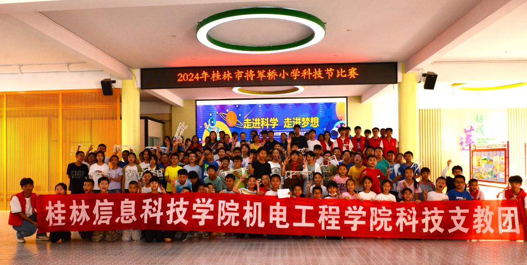 科技强国,科普先行;科技创新,少年先行。为了培养学生的创新精神和实践能力,营造浓郁的科学氛围,激发学生从小爱科学、学科学、用科学的兴趣,5月29日,机电工程学院赴桂林市将军桥小学开展2024年科技节比赛。本次活动由桂林市将军桥小学主办,机电工程学院党委承办,同时还邀请到桂林市象山区教育局相关领导参与指导,活动全程由机电工程学院科技支教团负责组织。