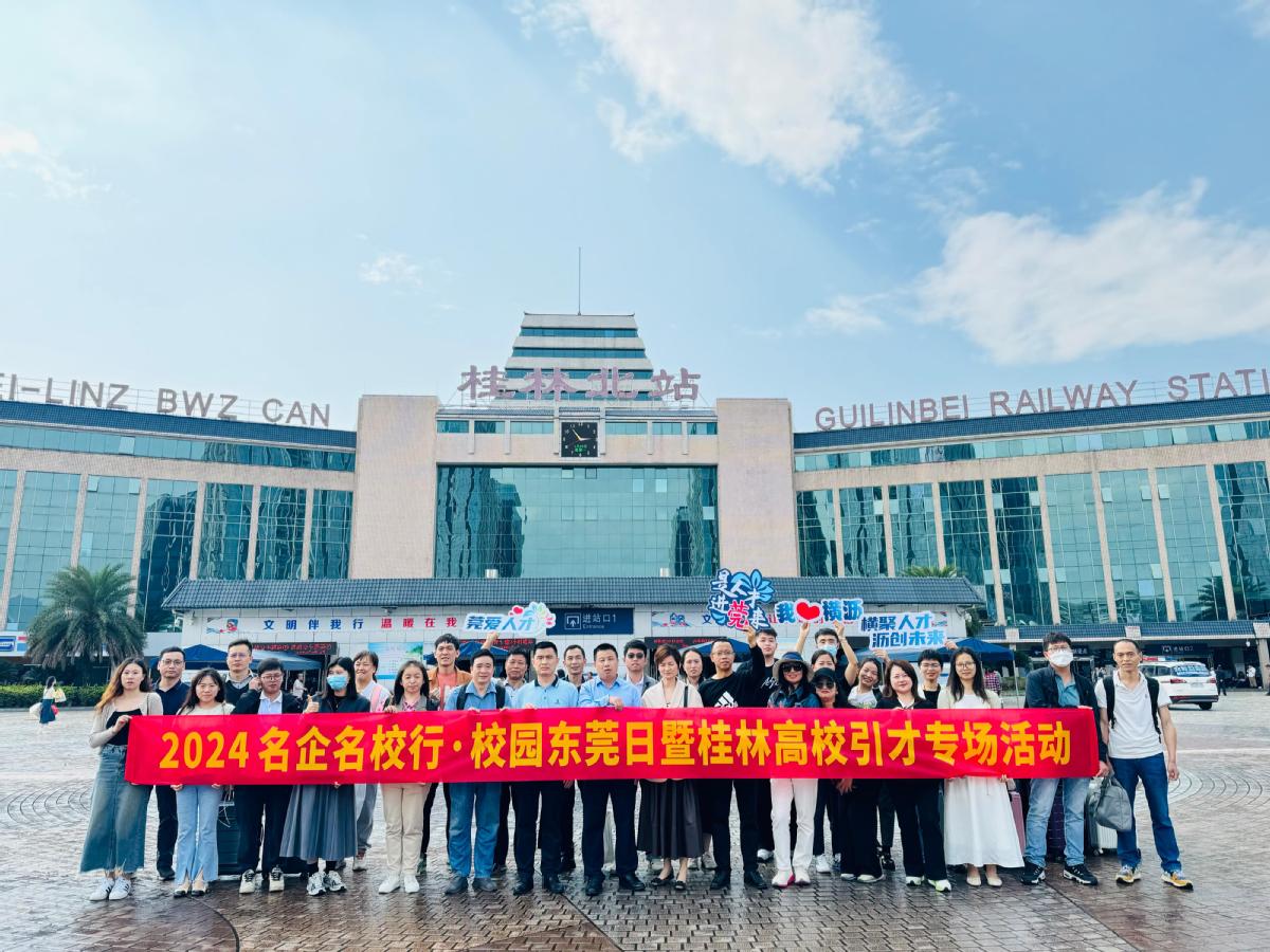 三月春风天,潺潺漓江水。踩着3月的尾巴,20余家优质莞企,在东莞市人社局横沥分局的组织下,带着515个优质岗位,来到了桂林。3月26日至28日期间,东莞揽才团将先后到桂林地区的三所优质高校,进行城市品牌推介、春季校园招聘、校企政合作洽谈等莞味十足的揽才活动,在这座山水甲天下的城市里点亮“东莞校园日”。