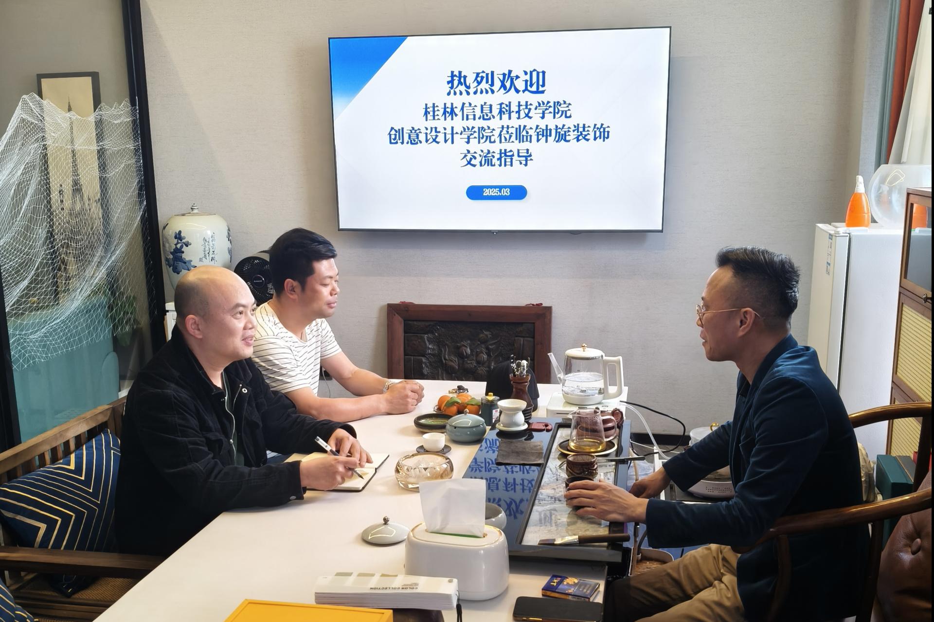 桂林市钟旋装饰工程有限公司总经理崔少钟对学院一行的到访表示热烈欢迎,并高度赞赏学院在创意设计领域的教学实践成果。他表示,愿意与学院建立长期合作关系,为学生提供实习、就业机会,实现人才储备与产业发展的双向赋能。