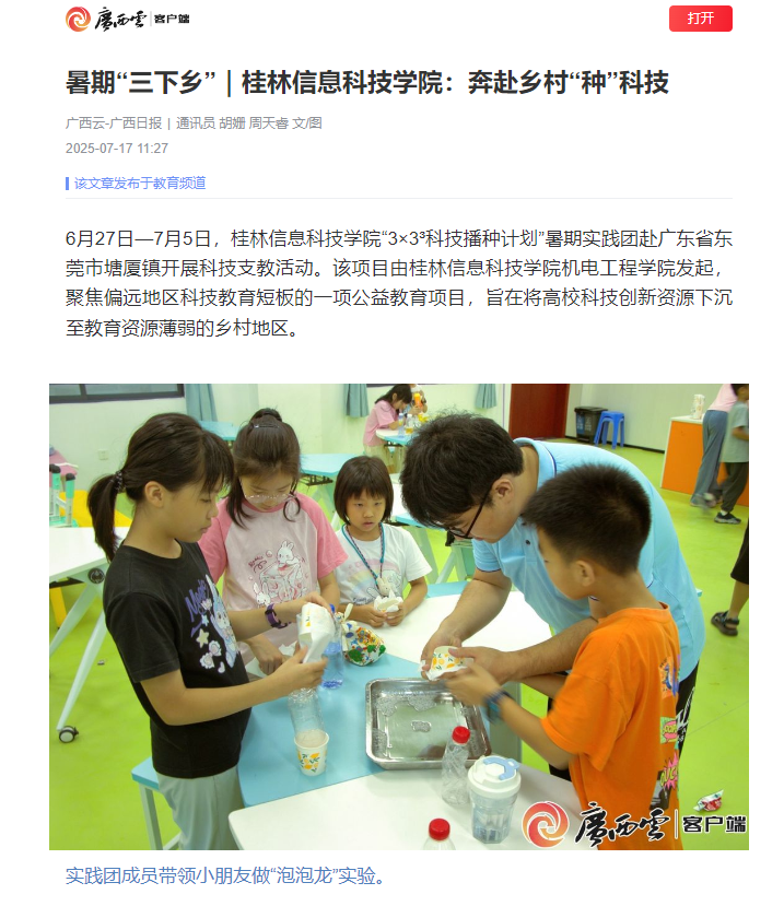 广西云链接:暑期“三下乡”|sjb世俱杯官方网站:奔赴乡村“种”科技