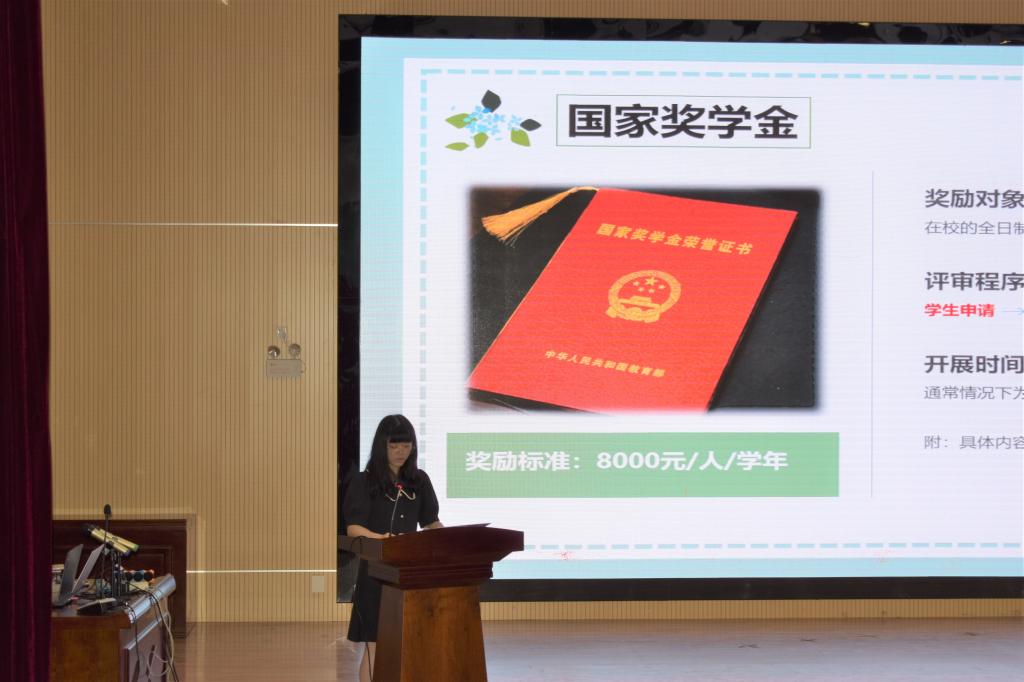 会议以《星辰大海》为序,回顾建党百年的奋斗征途,结合国家现行的资助政策,学生工作部刘珊珊老师对sjb世俱杯现行的资助政策中“三奖一助”的申请标准、评审及发放相关流程,生源地信用助学贷款办理的注意事项,应征入伍服兵役申请学费补偿的有关内容进行了宣讲,让大家对资助政策有了更深刻的了解。此外,自强之星获奖代表,来自机电工程系的吴清华同学与大家分享了她的学习生活点滴,鼓励大家要勇于面对困难,无论何时,坚定信念,砥砺前行,生活中的阴霾终将散去。会议上,还对本次主题征文比赛、演讲比赛及学院遴选的自强之星进行了表彰。