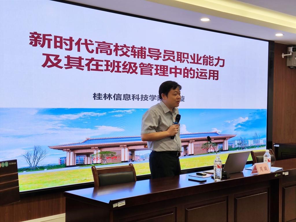 桂林电子科技大学计算机与信息安全学院、密码学院、软件学院党委书记文辉、郭庆教授、学校党委宣传部部长、融媒体中心主任张文源、桂林理工大学党委武装部部长、党委保卫工作部部长、保卫处处长张瑞、学校党委委员、党群事务部部长王南萍、桂林电子科技大学马克思主义学院系主任龙海平、桂林电子科技大学学生工作处副处长张华东分别就《安全稳定与辅导员工作》《砺学风、筑师魂——信科合格评估的主力军》《意识形态与辅导员工作》《辅导员工作成果化及科研能力提升》《党建与思想教育》《高校思想政治教育的新形势新使命新任务》《辅导员心理健康教育实务》进行了剖析;桂林理工大学艺术学院团委副书记梁璇以一线辅导员身份就《新形式下辅导员如何做好班级建设与管理》进行了交流。