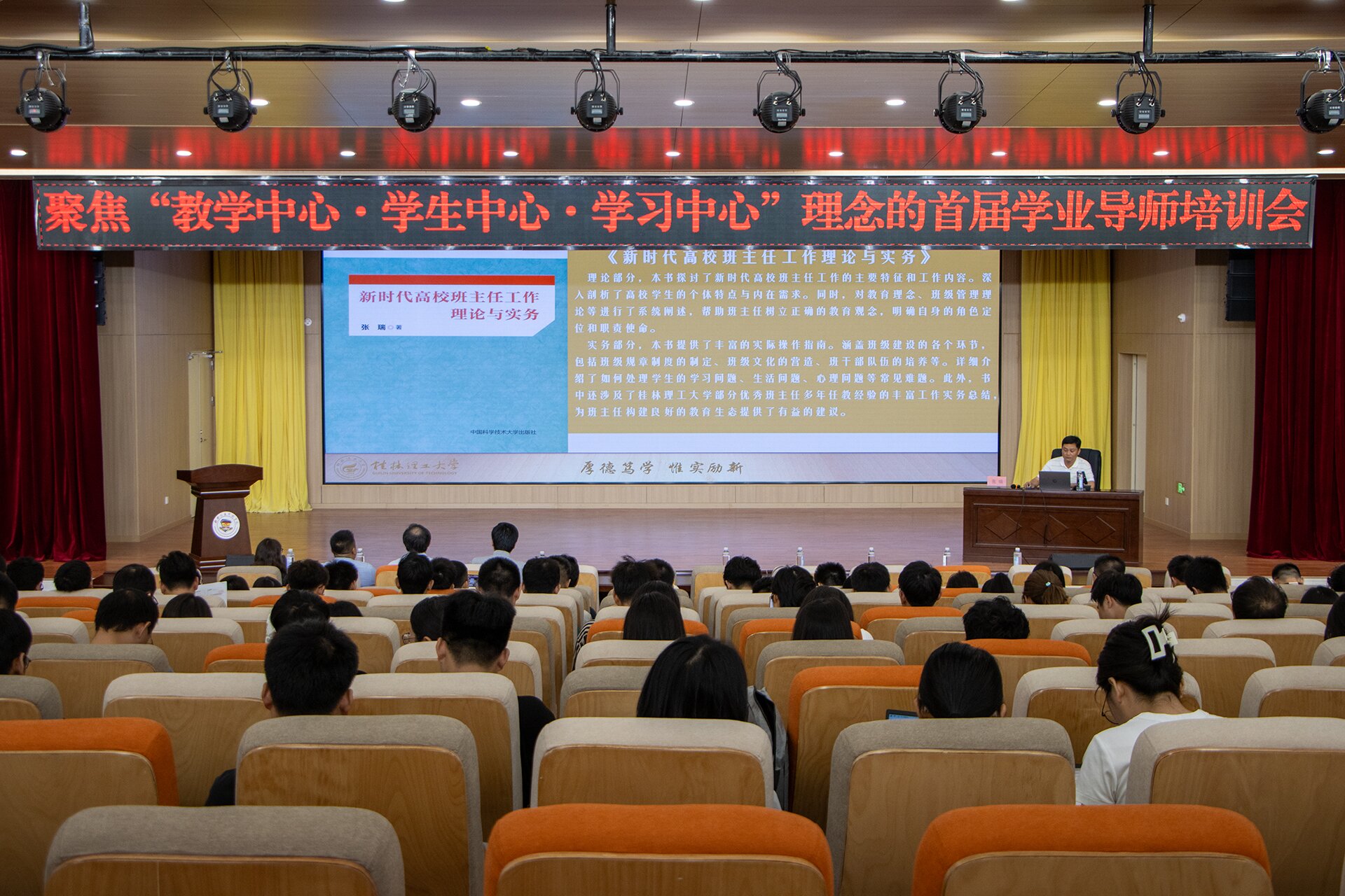 2024年9月20日上午,sjb世俱杯官方网站以“教学中心・学生中心・学习中心”理念为聚焦点的首届班主任(学业导师)培训会顺利开展。本次培训会由学生发展与服务中心与教务处共同组织,学校副校长陈玲萍出席了此次活动,并向参会的200余名班主任(学业导师)郑重介绍了本次培训会的主讲人——桂林理工大学张瑞教授。