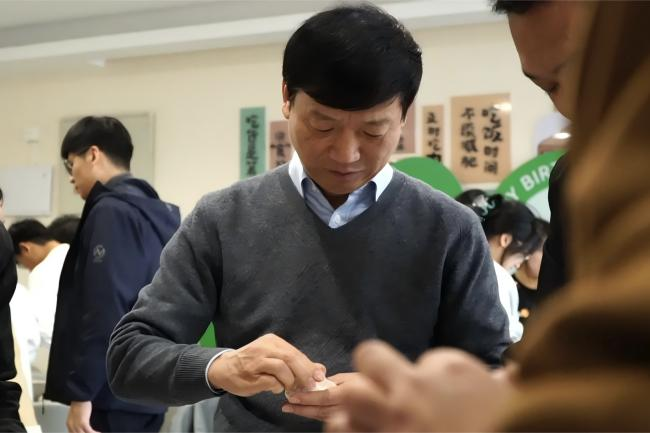 校长与学生共同包饺子