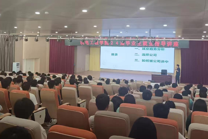 10月27日上午,机电工程学院邀请燕京啤酒(桂林漓泉)股份有限公司人力资源部经理(机电工程学院2014届毕业生胡杰校友)在F106报告厅开展学院2020级毕业生就业讲座。