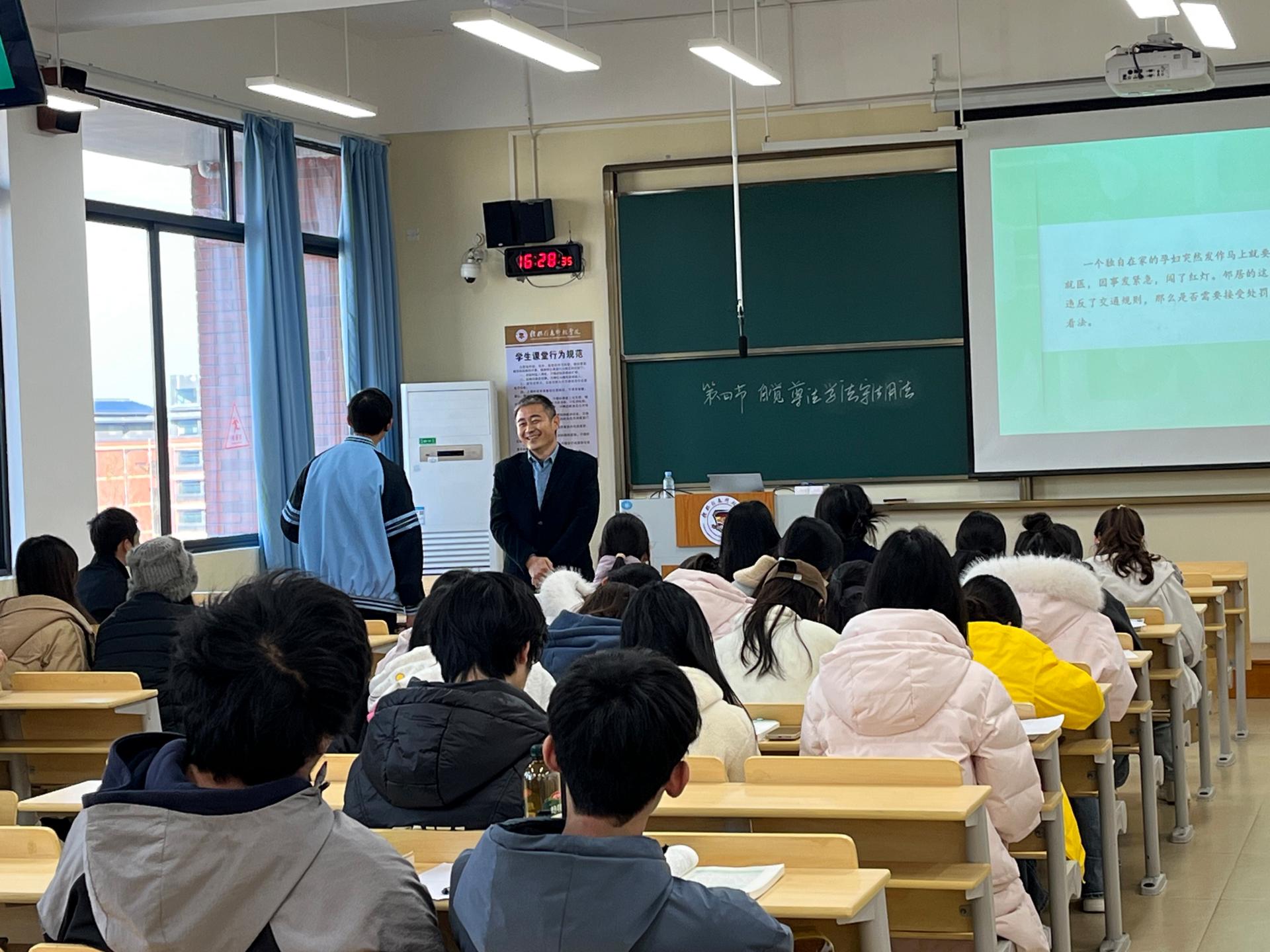 校领导为学生讲授思政课近日,学校副校长李桂华、陈玲萍、刘跃峰以及学校纪委书记、校长助理周璇先后走进思政课堂,为各学院学生讲授思政课。学校副校长李桂华以“决胜‘十四五’,奋发向前行”为主题,为商学院大一学生系统梳理了“十...