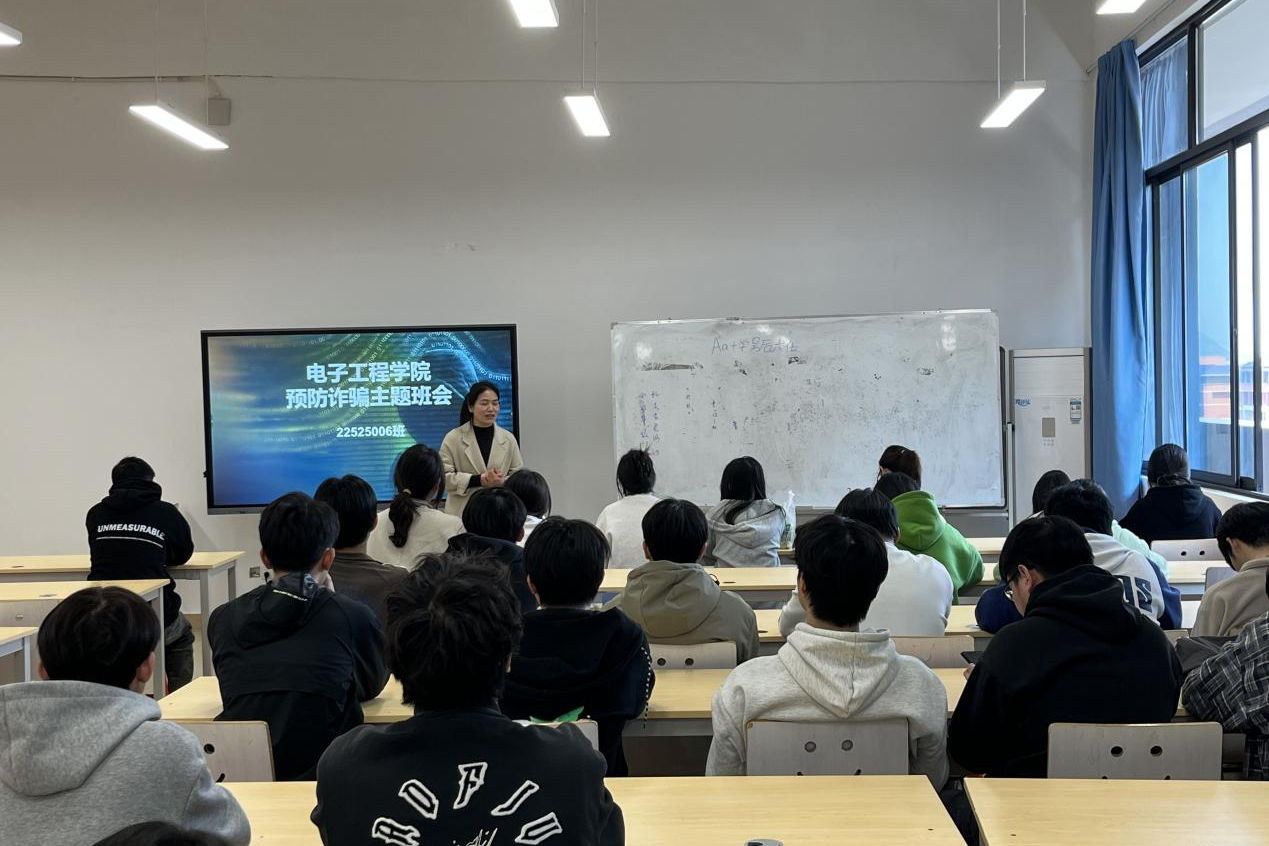 电子工程学院举行“预防诈骗、警钟长鸣”主题班会近日,为提高同学们的防诈骗意识,电子工程学院于敦明楼A514举办了以“预防诈骗、警钟长鸣”为主题的班会。本次班会活动邀请了各班班主任为同学们讲解当前诈骗的常见手段及预防措施。会上,班主任们通过生动的案...