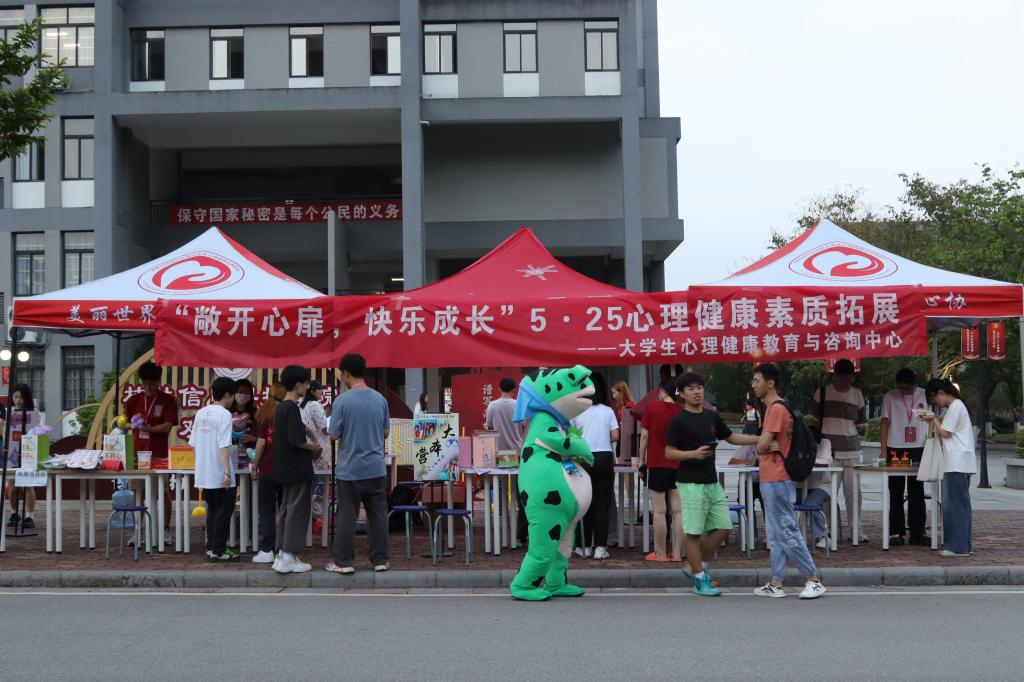 “敞开心扉,快乐成长”——学校“5·25”大学生心理健康素质拓展游园会...5月25日是全国大学生心理健康日,为引导大学生树立团结友爱、互帮互助、携手共进的意识,培育学生自尊自信、理性平和、积极向上的健康心态,5月24日,大学生心理中心带领大学生心理健康志愿者协会在校内第五教学...