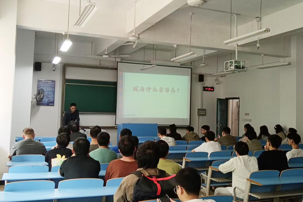机电工程学院开展毕业生应征入伍宣讲会为帮助学生全面了解应征入伍政策,鼓励应届毕业大学生响应国家号召应征入伍,5月24日下午,我院在31103多媒体教室召开征兵入伍动员宣讲会。会议由申锋老师主持,邀请学校征兵工作站彭尧老师对征兵政策进行宣讲,...