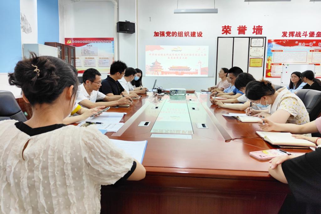 外贸与外语学院教工党支部召开专题学习会5月26日中午,外贸与外语学院教工党支部组织全体教师党员在12501党员会议室召开专题学习会,会议由学院教工党支部教师党员常倩倩、冯文雄、蒋兰兰三位同志领学,全体教师党员参加。会上,教师党员常倩倩传达学习...