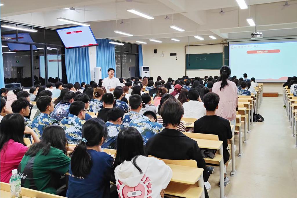 【新生入学教育】外贸与外语学院开展“坚定理想信念 启蒙入党初心——如...8月28日至9月18日,外贸与外语学院组织2023级新生在敏思楼D305开展了以“坚定理想信念 启蒙入党初心——如何成为一名共产党员”为主题的新生入学教育主题系列讲座,讲座由外贸与外语学院第一学生党支部书记杨锦超...