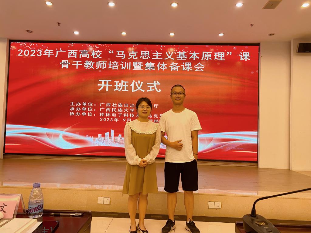 马克思主义学院教师参加2023年全区高校“马克思主义基本原理”课骨干教...为进一步加强广西高校思想政治理论课建设,不断提高思政课教师理论水平,近日,由自治区教育厅主办、广西民族大学承办的2023年全区高校“马克思主义基本原理”课骨干教师培训暨集体备课会在桂林举行。来自全区40...