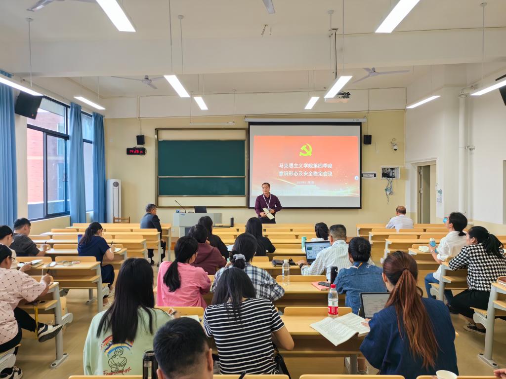 马克思主义学院党支部召开第四季度意识形态和安全稳定形势分析研判会11月3日下午,马克思主义学院党支部在明志楼514教室组织召开2023年第四季度意识形态和安全稳定形势分析研判会。会议由党支部副书记剌啸媛主持,全体马克思主义学院教师参加会议。会上,马克思主义学院党总支副书...