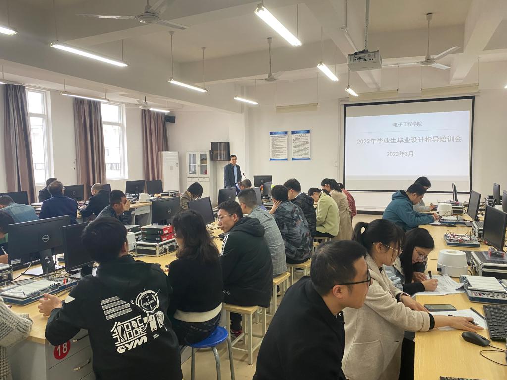 电子工程学院召开2023年毕业生毕业设计指导培训会为加强学生毕业设计的规范性,提高毕业设计(论文)质量,3月8日中午,电子工程学院在41402实验室召开2023年毕业生毕业设计指导培训会,会议由学院院长韩桂明、副院长易艺主持,学院全体教师参加。会上,韩院长围...
