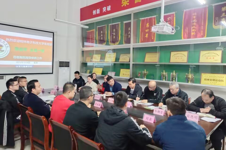 桂林电子科技大学体育部来体育与健康学院调研体育专业申报工作3月8日上午,桂林电子科技大学体育部主任梁益军一行9人来我院调研体育专业申报工作,体育与健康学院院长周勇、院长助理关永康及各教研室主任参加此次调研会议。院长周勇对梁益军主任一行的到访表示热烈欢迎。随...