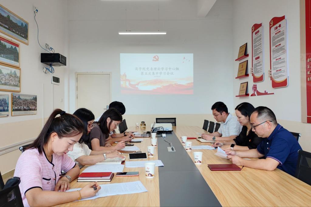 商学院党委理论学习中心组召开2024年第五次学习会6月28日,商学院党委在博文楼F504召开理论学习中心组2024年第五次集体学习会议。学院党委理论学习中心组成员参加学习,学院党委书记许奇主持会议,会议还邀请了学校副校长李桂华列席旁听指导。会议传达学习习近平...
