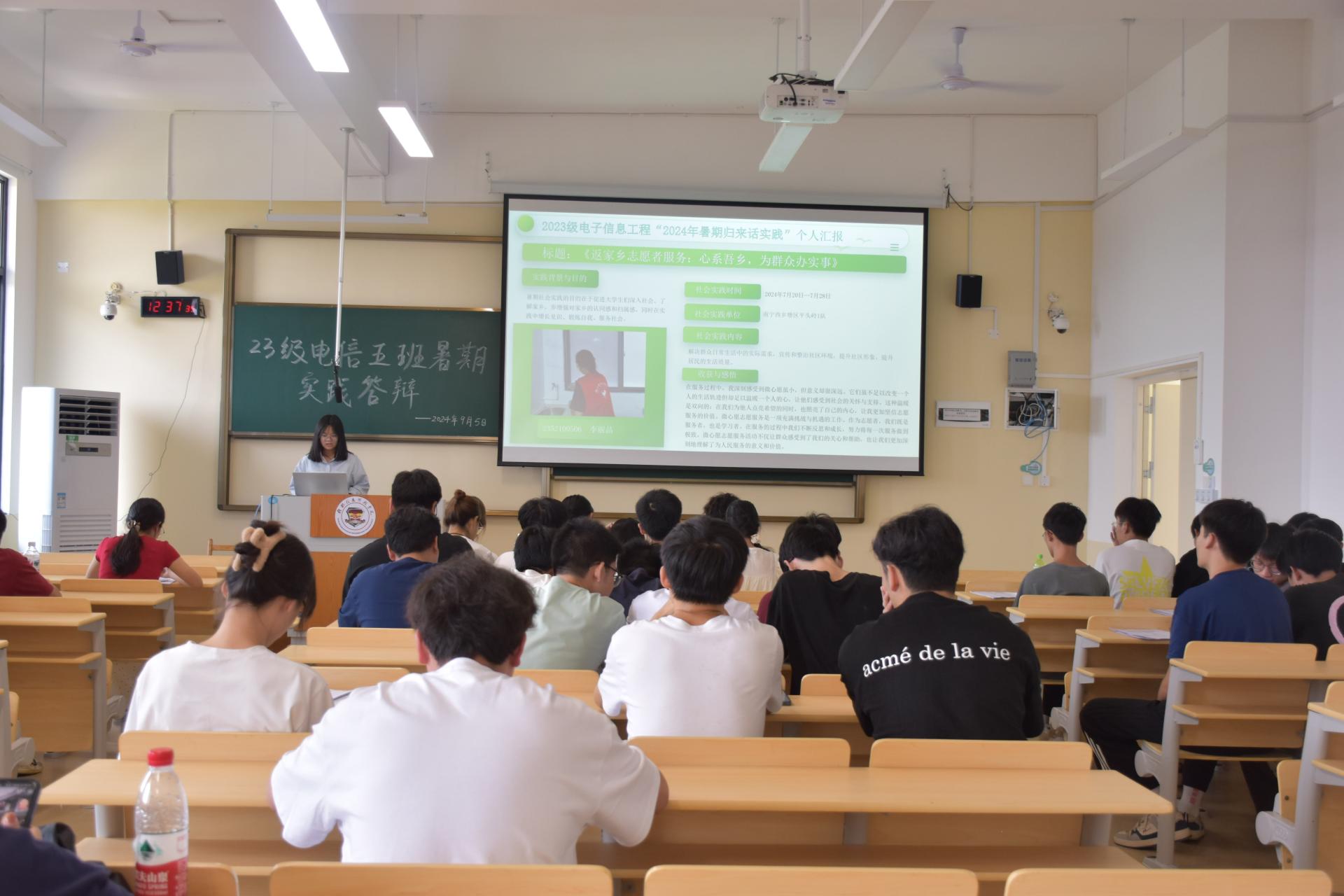 实践归来话成长,青春逐梦向未来---电子工程学院顺利召开2024年暑期大学...为进一步检验同学们在2024年暑期大学生社会实践中的实践成果,引导和帮助青年学生在社会课堂中增长才干、积极奉献,争做有理想、敢担当、能吃苦、肯奋斗的新时代好青年。9月3日至5日,电子工程学院在明志楼开展了...