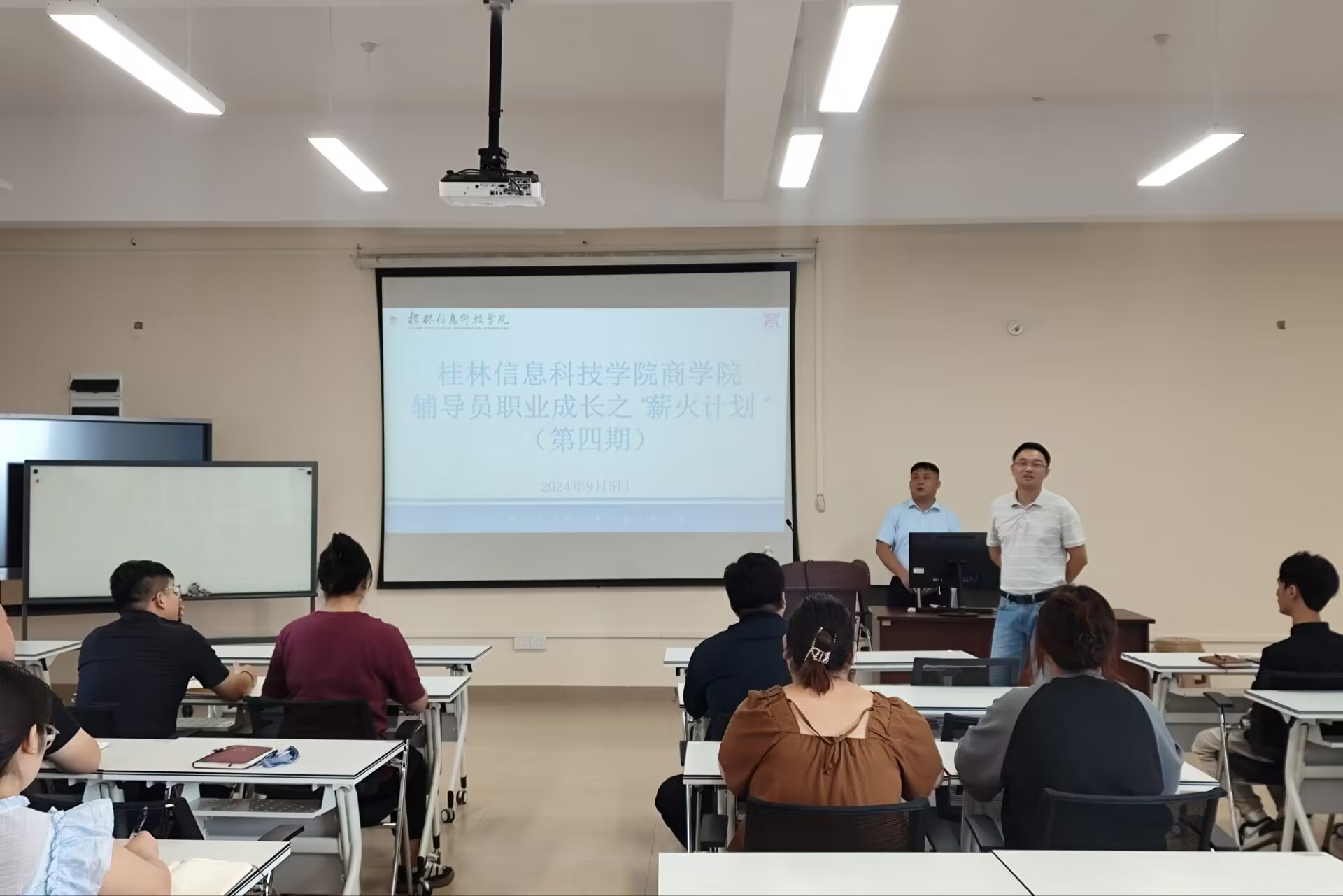 商学院开展党建工作培训暨辅导员职业成长之“薪火计划”(第四期)为积极探索和创新党支部建设路径,不断夯实党建工作基础,全面提升党支部工作水平,9月5日,商学院在F407开展党建工作培训会,会议邀请电子工程学院学工办主任谢长远担任主讲人,主题分享广西高校党建工作样板支...