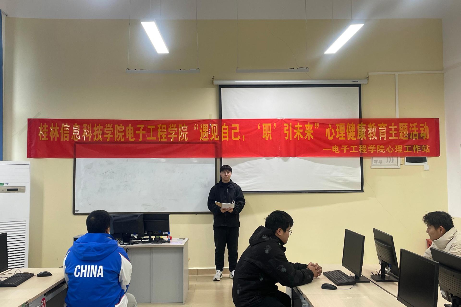 电子工程学院开展“遇见自己,‘职’引未来”心理健康教育主题活动电子工程学院于2024年12月18日成功举办“遇见自己,‘职’引未来”心理健康教育主题活动。学院全体辅导员与专任教师共同参与,旨在帮助学生理清职业价值观,增强职业体验感。本次活动包括两个部分。首先进行了团体...