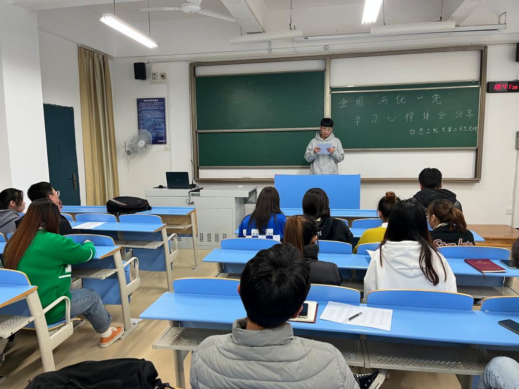 为学习贯彻习近平总书记“七一”重要讲话精神,增强“四个意识”、“两个维护”思想教育,11月26日下午,信息工程学院第一、第二、第三学生党支部在31104召开了学习全国“两优一先”先进事迹专题会议。