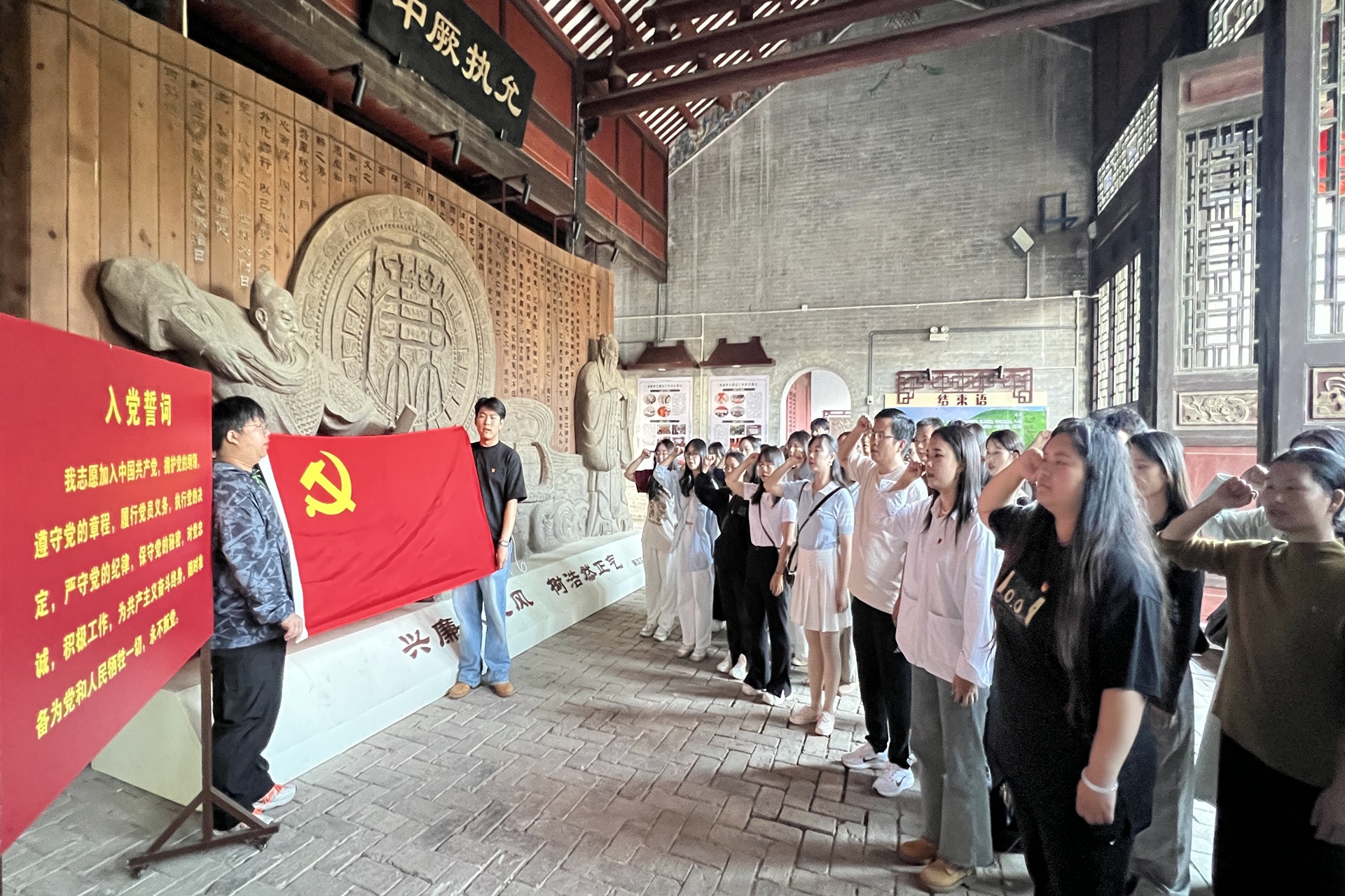 活动中,学院师生党员在讲解员的带领下,深入了解了周渭祠的历史背景和文化内涵,聆听了周渭御史的生平事迹和廉政精神。讲解员生动地讲述了周渭如何为民请命、整顿军纪、促进岭南稳定与发展等十二个生平故事,使大家深受感动。随后,大家参观了湖南会馆“廉洁文化和典型案例展示厅”,馆内展示了20多个近年来全国查出的严重违纪违法典型案例。最后,师生党员们共同重温了入党誓词,大家举起右手,面对鲜红的党旗,庄严宣誓,再次坚定了为共产主义事业奋斗终身的决心和信念。